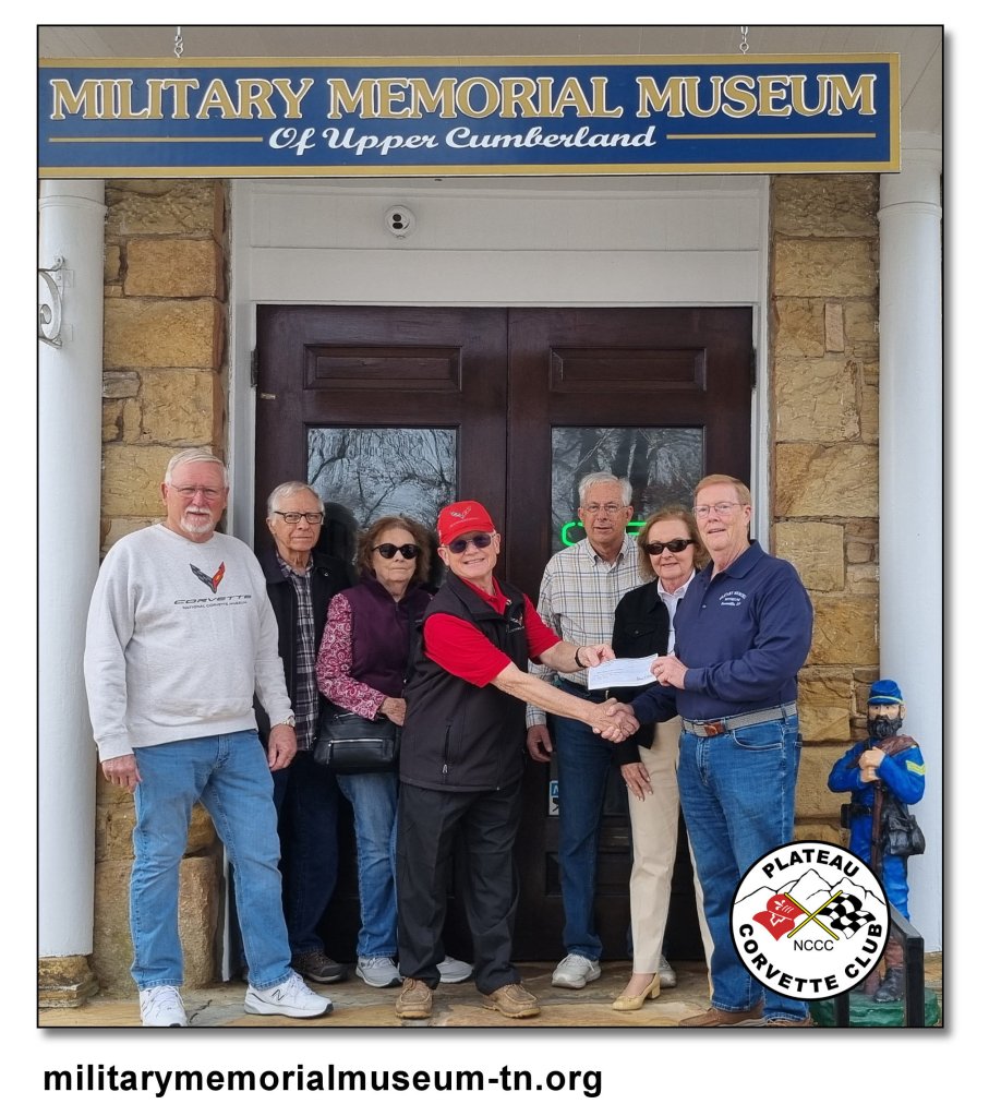 Today, November 20th 2025, the Plateau Corvette Club donated $1,500 to The Military Memorial Museum in Crossville Tennessee. Each year our club makes at least two financial donations to regional organizations. Thanks to the club members for making this happen!