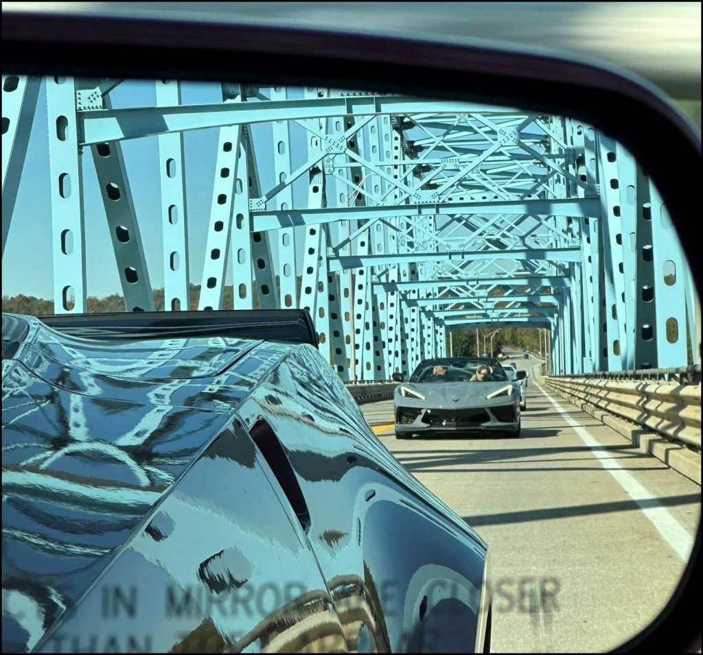The afternoon brought two powerful brushstrokes of history: first, the Simpson County Jail Museum, where graffiti-covered walls echoed stories of Civil War prisoners once held within. Then on to the towering Jefferson Davis Monument, where we toured the museum and parked our Vettes beneath the 351-foot obelisk for a photo op that felt both humbling and iconic.