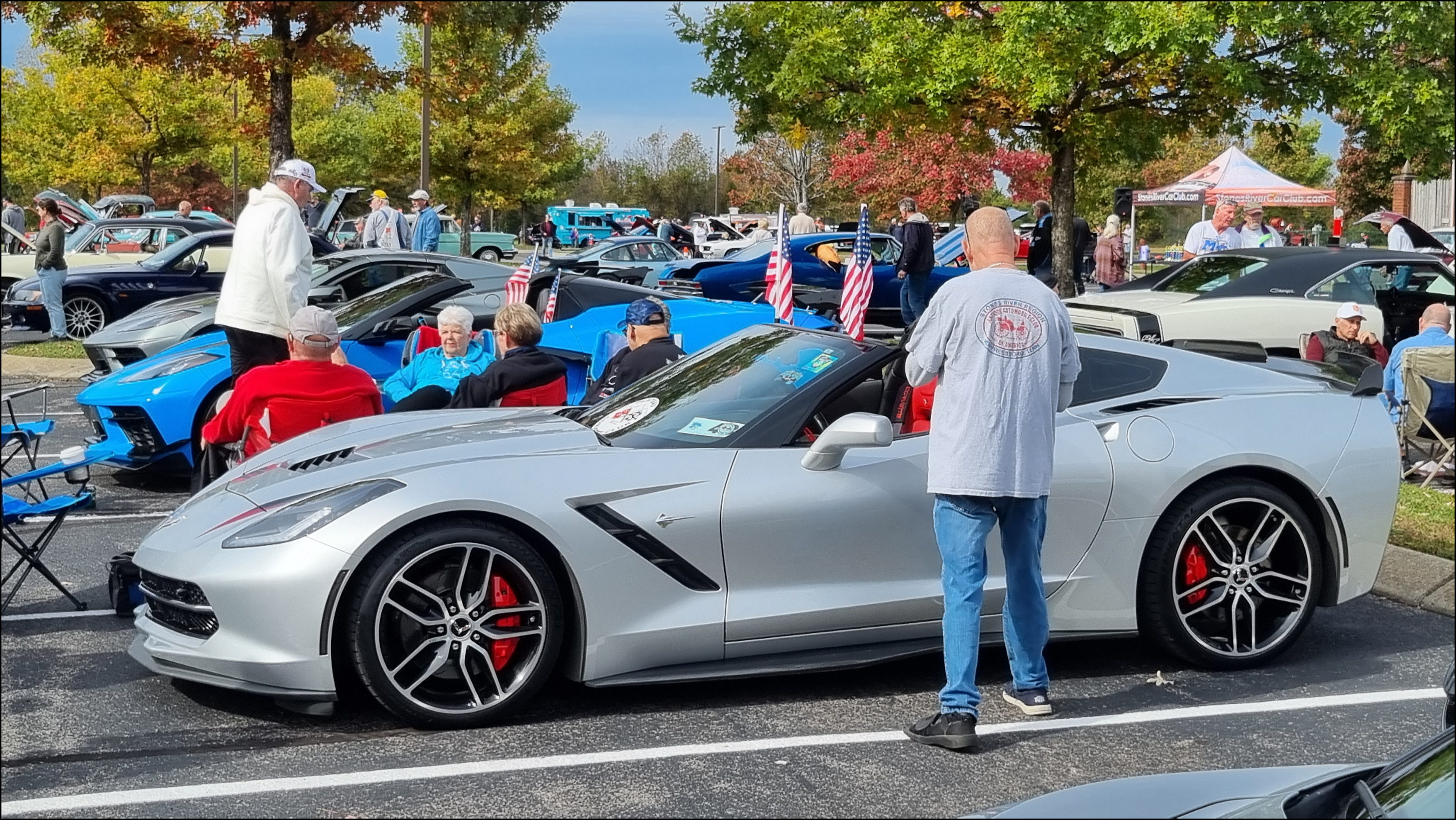 Ten PCC members in five corvettes cruised out of Crossville down the road departing at an early and chilly 8am. Our destination for the day was the First United Methodist Church in Murfreesboro. We went to Murfreesboro to participate in the “WE REMEMBER YOU” caregivers support – 1st annual car show. This support group is for people who have and care for loved ones with dementia. I spoke at length with the founder of the support group, Lee Ann Hyatt, and she explained to me how the support group started at the church to offer the community important resources to caregivers of those suffering from dementia.