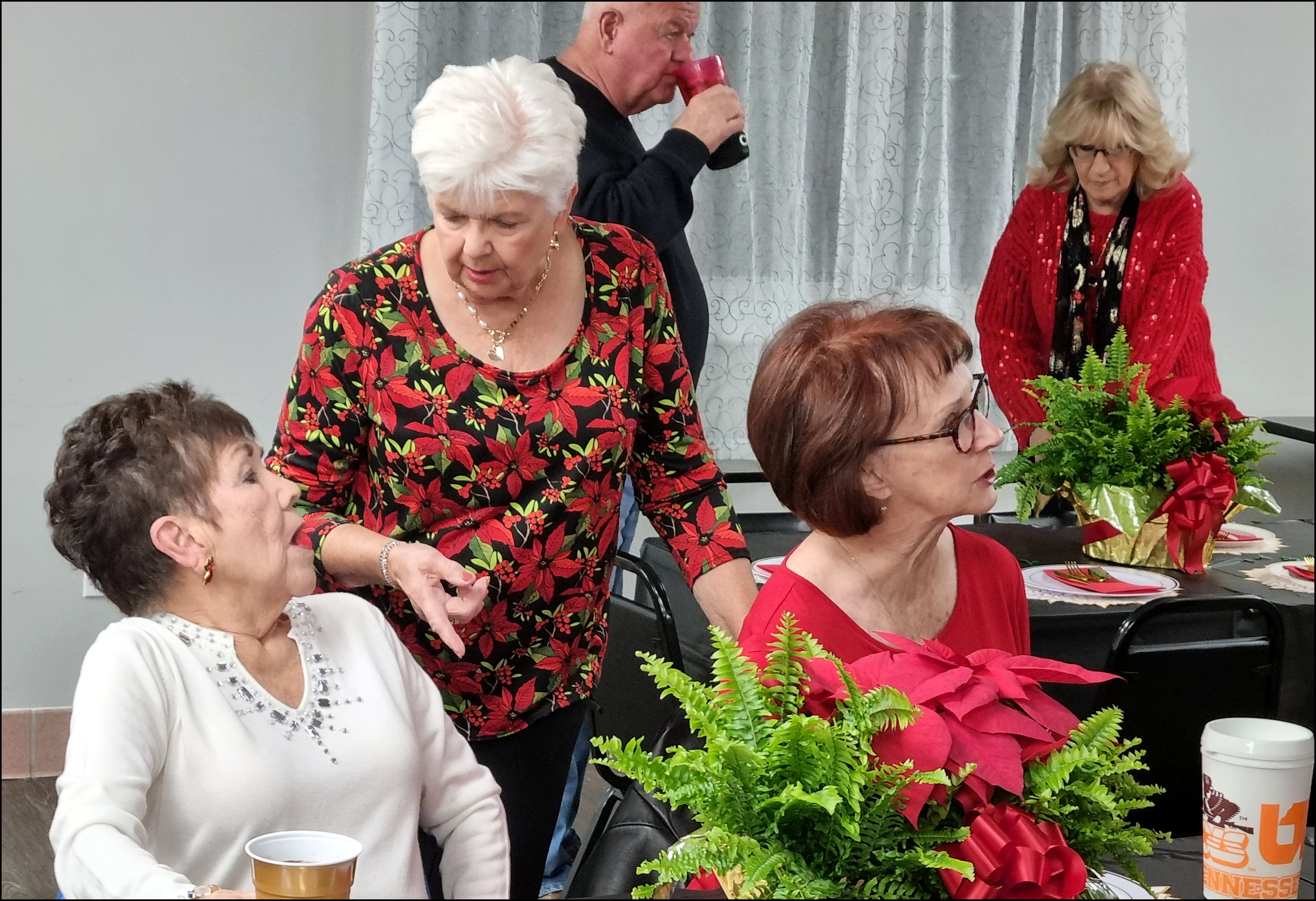 What a wonderful holiday evening celebration we had this week, shared with 61 fabulous club members. Kelly Rhoades was this year’s event committee chairperson and her energy lead a team of angles in organizing a splendid social event. A special thank you goes out to Sharon Pearson for coordinating a festive singing performance from the Crossville, Cumberland County Playhouse Glee Club. [CCPlayhouse Glee] The youth performance group sang heartwarming holiday songs that put smiles on everyone’s face.