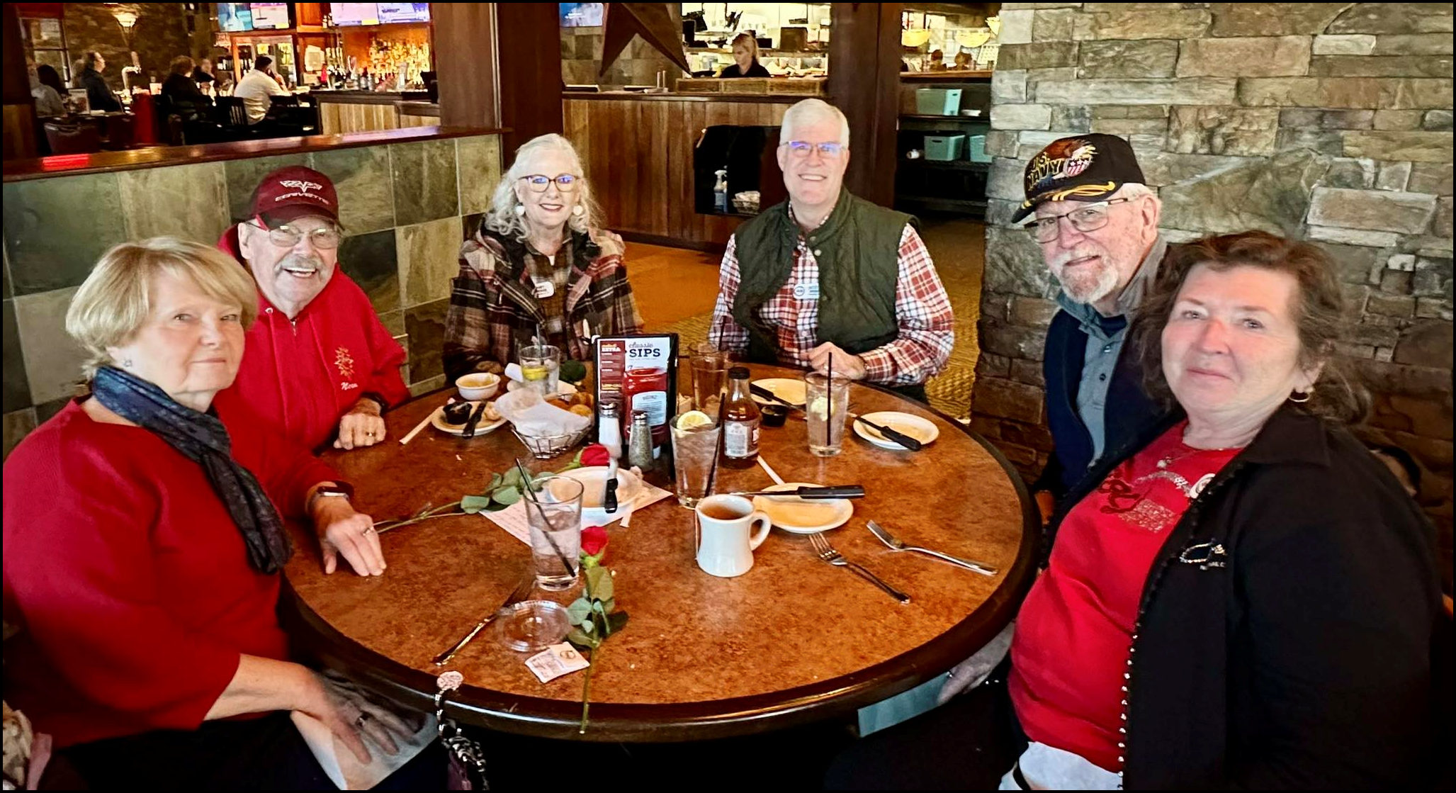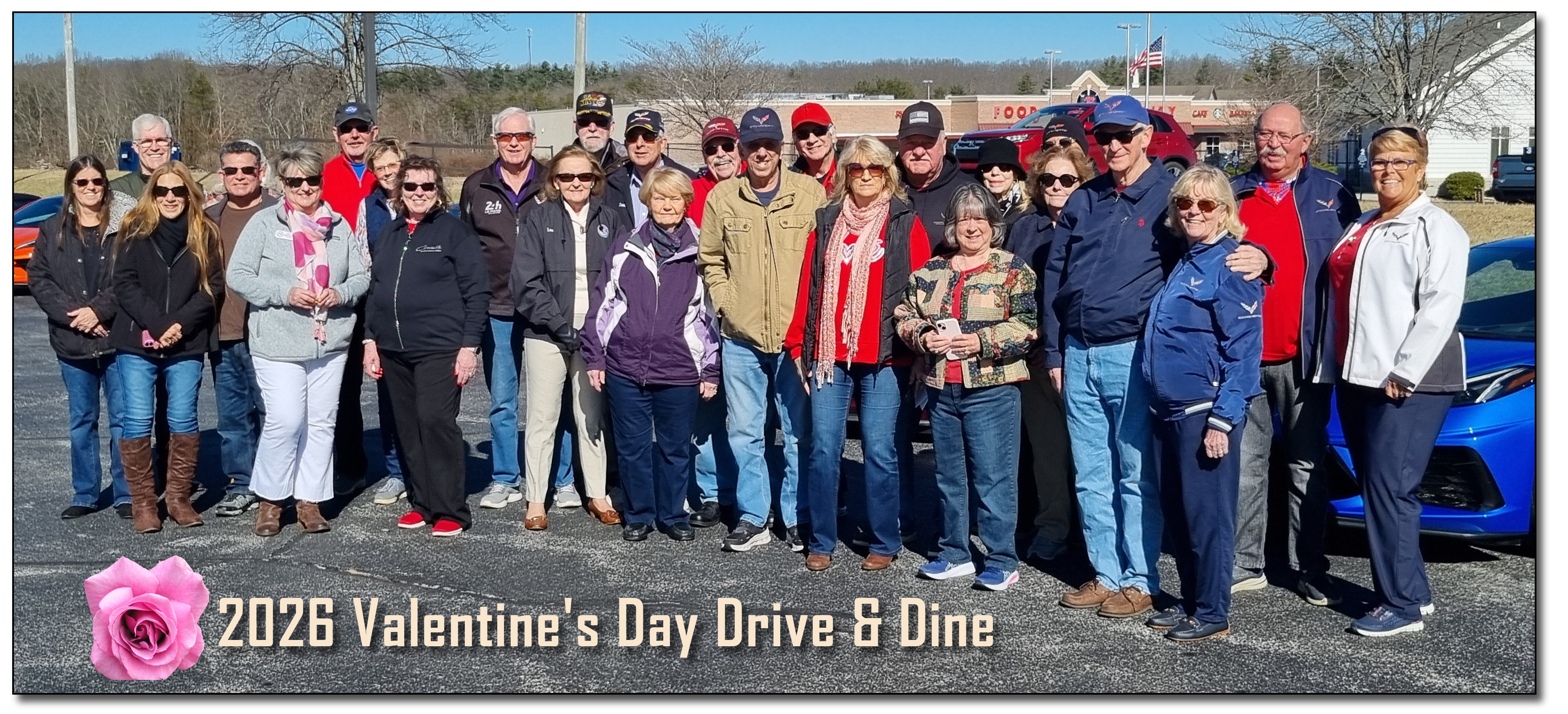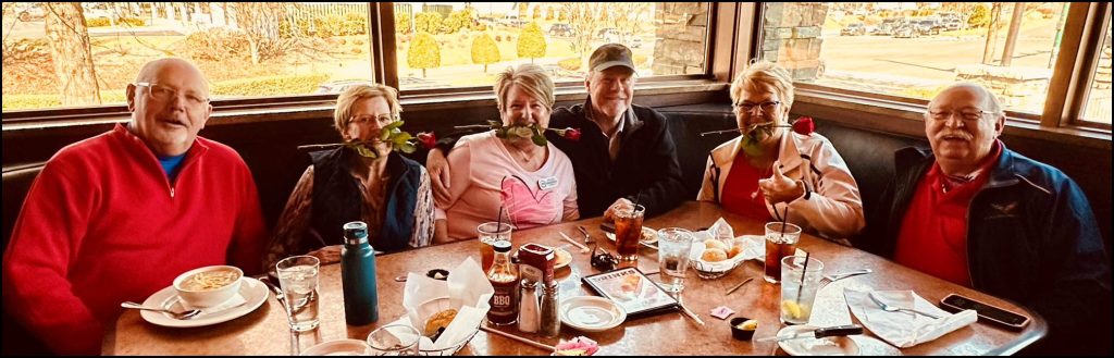 What a beautiful day we had for our club Valentine’s Drive & Dine! Our thanks to John and Reggie Leppien for planning this event. We circled up for our driver’s meeting—smiles everywhere, laughter bouncing around the lot. John Leppien, notes in hand, gave an overview on the day’s plan. Before we hit the road, Kathy Johnson offered a short prayer, asking for safety, blessings, and joy along the way. Then off we went.