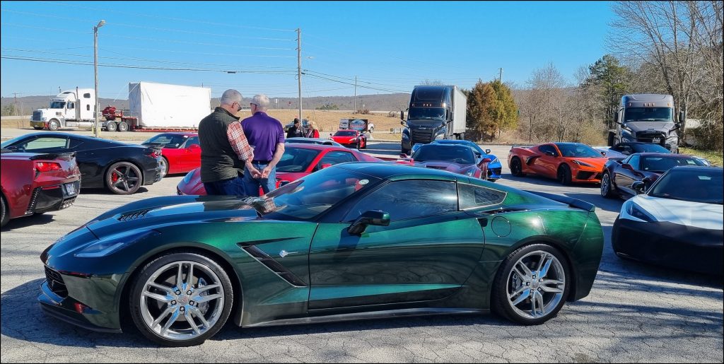 The skies were bright and sunny, the air was crisp, and the parking lot was filled with 15 Corvettes, 1 brave steel car, and 32 wonderful Corvette friends ready for a day of fun.