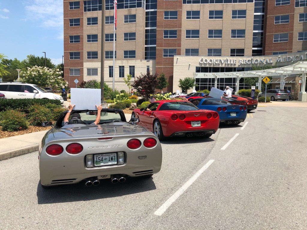 On Thursday July 16th The plateau Corvette Club enjoyed a fine lunch at Mauricio’s restaurant, then were joined by members of the Cookeville Corvette Club for a celebratory drive past the Cookeville Regional Medical Center. The drive was a thank you to all the medical staff that are caring for patients during this Covid 19 epidemic. Thanks to Frank for coordinating the drive.
