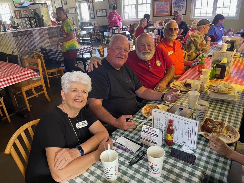 Dr. Seuss described the weather in Crossville Friday, “The sun did not shine. It was too wet to play. So we sat in the house, all that cold, cold, wet day.” – That was true for our members living in the Crossville area that were unable to meet early Friday morning in Monterey to join us for a spirited ride along some twisty Tennessee backroads on our way to eat the award winning, #1 – “Gus’s World Famous Fried Chicken” – their motto – “If you haven’t eaten at Gus’s, you haven’t eaten fried chicken”. For the 15 members who traveled with us, we enjoyed picture perfect weather all the way to Knoxville and almost all the way back before the skies opened up and it rained, but just briefly.