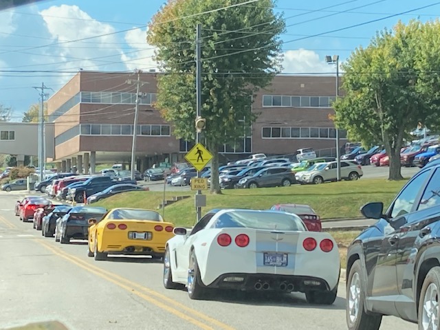 October 13th Plateau Corvette Club members Spread some Happiness with a ” Cheer Up & Get Well Soon “Corvette Parade for club member Tim and his wife . Tim is doing cardiac rehab at Cumberland Medical Center. After the parade they joined club members for lunch at Express Lunch in downtown Crossville. We wish him a speedy recovery.