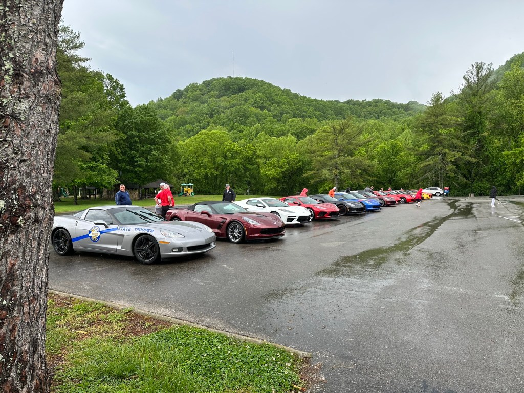 16 Corvettes (17 counting KSP Trooper Jonathan) and 1 steel car braved the elements to get out for the day.