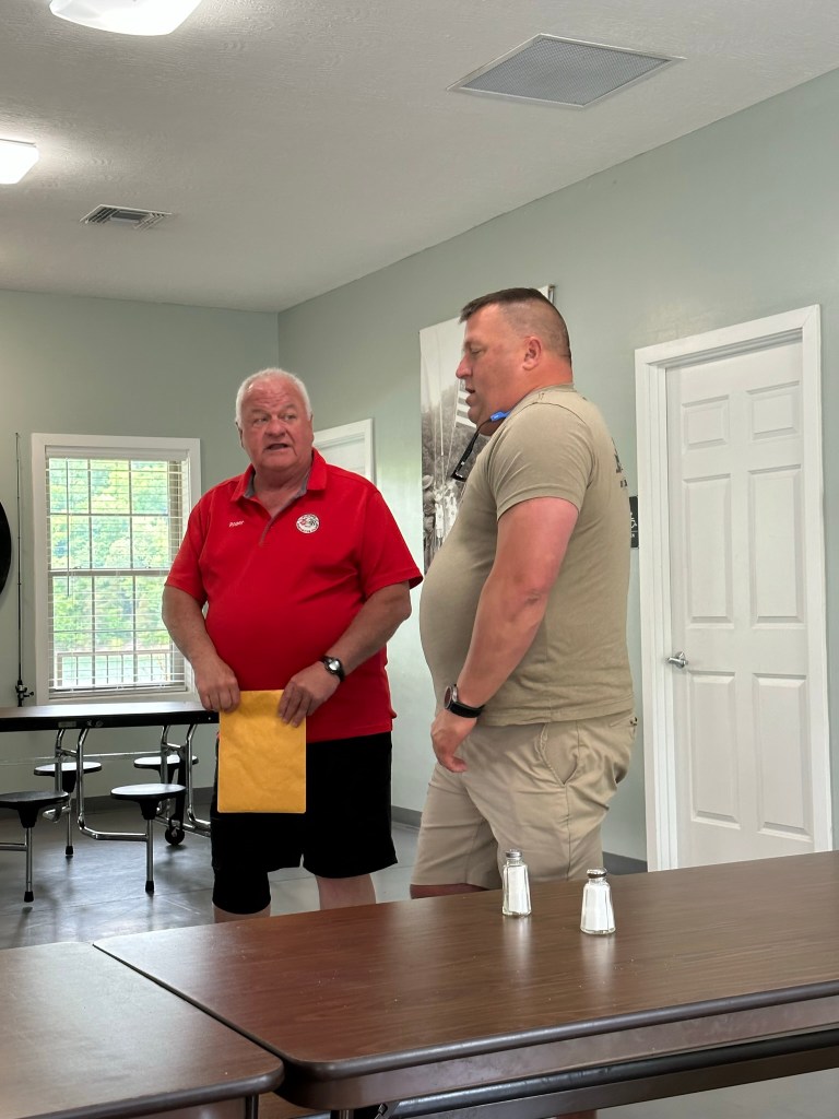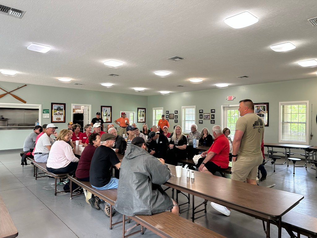 After a delicious lunch Jonathan gave a really nice talk about the history of Trooper Island and what they do there. He answered questions and explained all about the program and how it helps underprivileged children of Kentucky. Then he gave a guided tour of the Island, which was really nice. They saw the inside of the Chapel and the inside of one of the boys cabins (holds 22 boys) and then they toured the camp counselor’s cabins too.