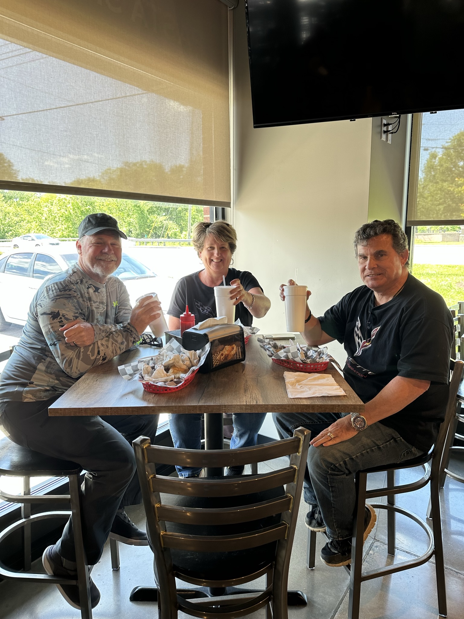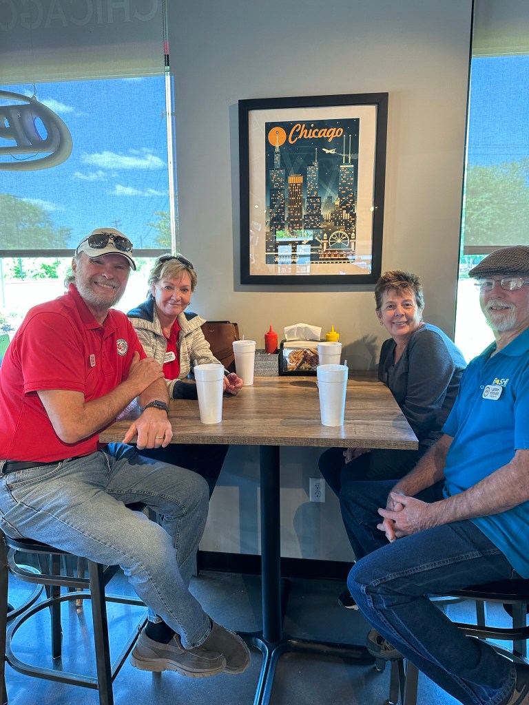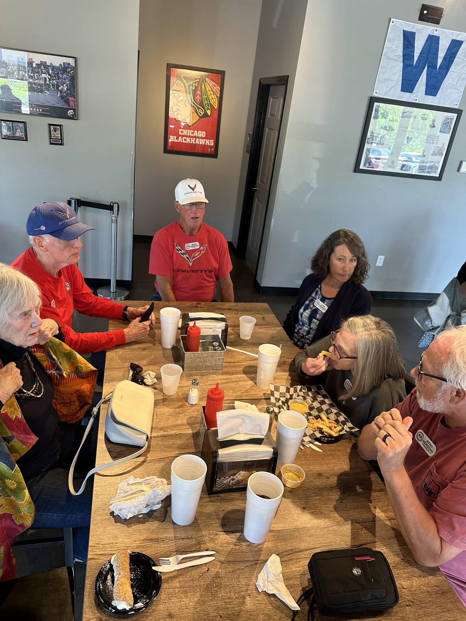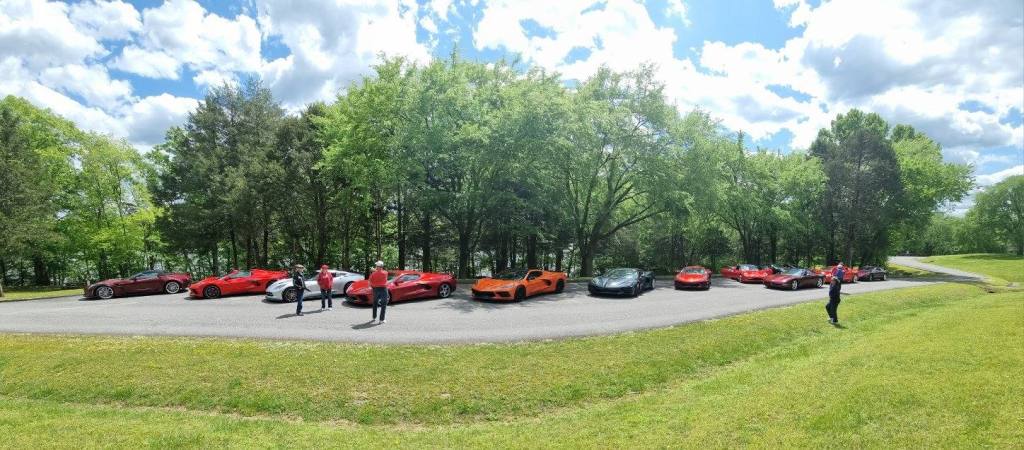 May 2nd, Plateau Corvette Club members enjoyed a beautiful day for a Corvette Cruise! They met under sunny skies in Cookeville and headed out to Campione’s Taste of Chicago in Goodlettsville, Tennessee in a “parade” of 13 Corvettes carrying 25 of our members and their guests. On the way there they saw some pretty quirky sights on the side of the road – a chopped school bus, a Giant Muffler Man – (Route 66 style), but they all thoroughly enjoyed the Route that Roger mapped out for them. It was the perfect blend of twisties, big sweeping curves and the beautiful hills and valleys that Tennessee is famous for. Once they got to Campione’s they enjoyed the true “taste of Chicago” – some members had an Italian Beef sandwich and some of them experienced a true “Chicago Dog” complete with bright neon green Chicago relish and dill pickle! On their way back they stopped at Tennessee’s Historic Rock Castle – built from 1784 – 1796 in Hendersonville, Tennessee. Then ended the day with Ice Cream at Cream City in Cookeville, where they shared smiles, laughter and great memories of another perfect day together, good times and good friends!