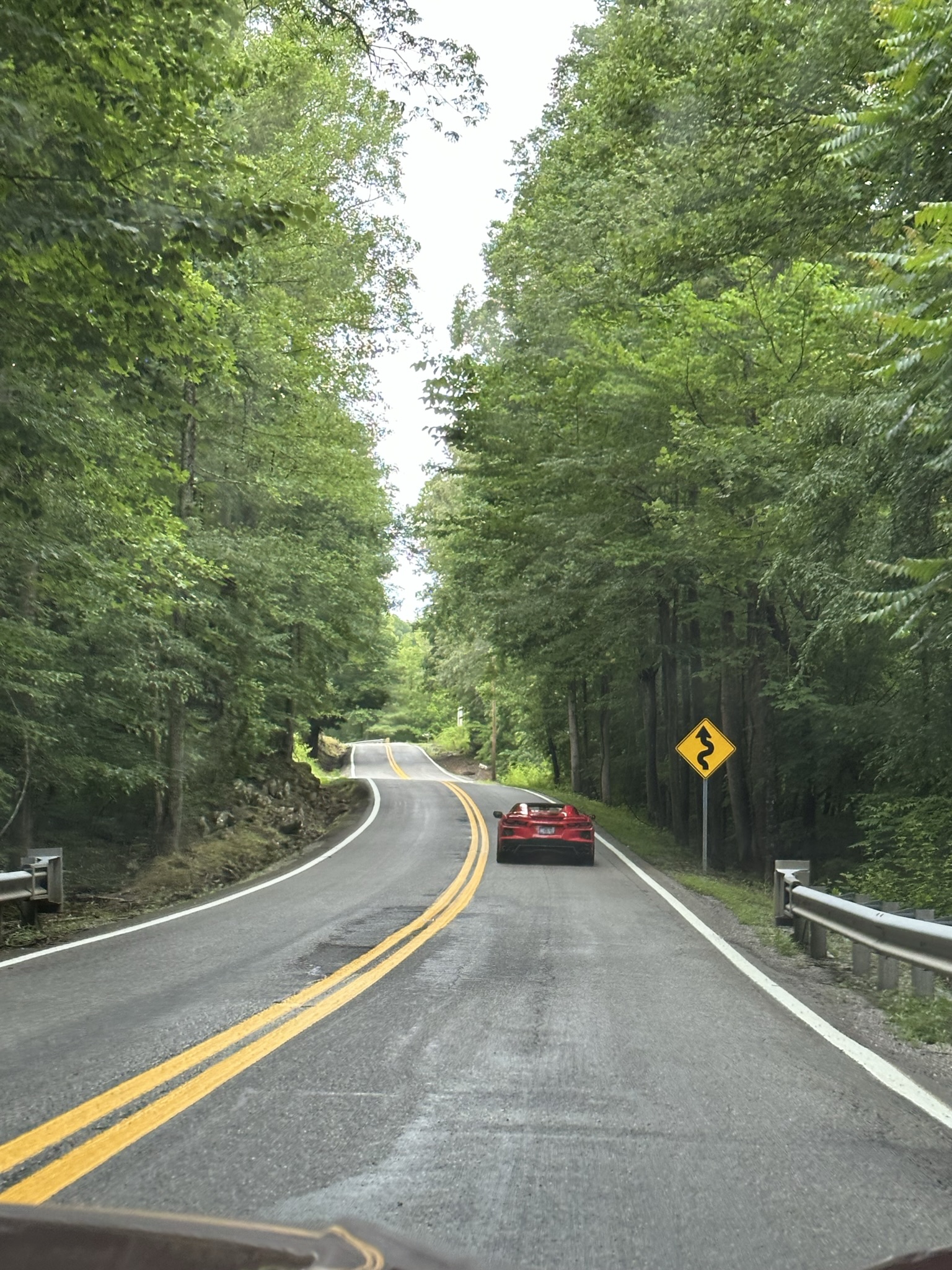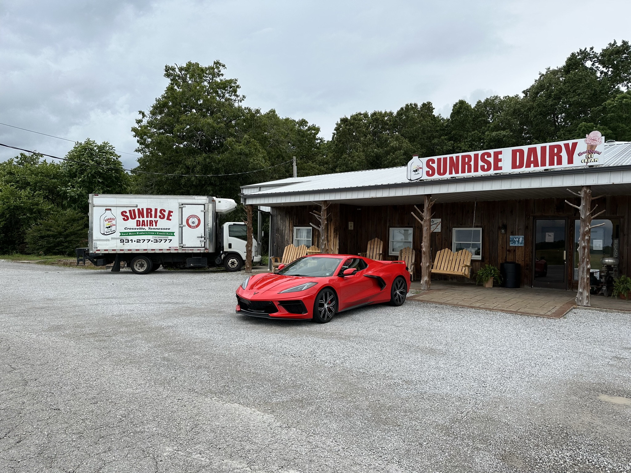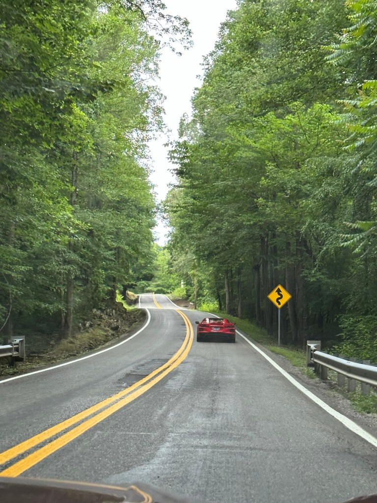 June 21st a few Plateau Corvette Club members gathered together to take on the Triangle and experience the “ride we wouldn’t soon forget”, the skies were cloudy and gray with a few drops of rain falling. The group consisted of just 4 Plateau Corvette Club members in 2 cars. After they headed out, the rain soon stopped and they enjoyed partly sunny skies as they hit the curves on their way to the Warden’s Table at Brushy Mountain for lunch. The food was delicious and filling, conversation among friends was interesting and engaging. After lunch you could feel anticipation in the air as they headed to their vehicles. Once inside their cars, they buckled up the seat belts, revved the engines and made a leisurely exit from the parking lot, turning left on Hwy 116 to begin their mission of “Tamin‘ the Triangle!” Although they have driven the route several times, each experience along the highway with its tight switchbacks and big sweeping curves is equally as thrilling as their first adrenaline adventure along the route. After the Triangle, they continued on their way to the next stop……ICE CREAM – of course! They stopped at the Sunrise Dairy in Crossville and it was delicious! We will definitely be back there!