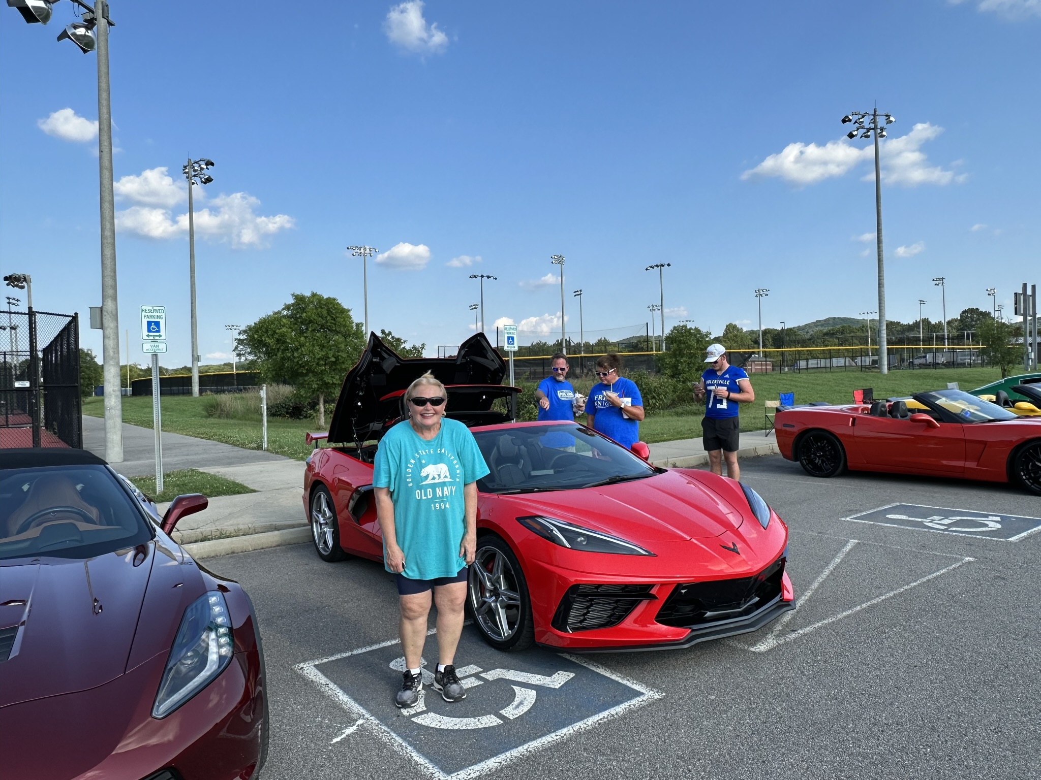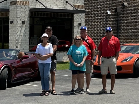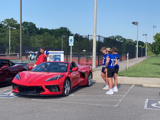 Sunday, July 23rd six Plateau Corvette Club members in 3 Corvettes headed out for a beautiful Sunday Drive n Dine to Monell’s at the Manor in Nashville. The weather was perfect with a slight breeze and bright sunny skies that lit up the clouds, making them look 3-dimensional – just breathtaking! When we arrived at Monell’s we parked and went inside. Once at the table, the food came fast and furious. It was delicious as usual, Our menu included their famous Skillet Fried Chicken, BBQ Ribs, Pot Roast (with gravy, potatoes, carrots, and onions), Stuffed Spinach Lasagna Shells, green beans, corn pudding, mashed potatoes, mac n cheese, turnip greens, cornbread, biscuits and gravy, cold salads and pecan pie for dessert – beverage was also included. It wasn’t long until we were given the “Meal Ticket” cards that say “Please Pay Cashier” and “I’ve eaten and I can’t get up” We exited the restaurant, got in our cars and headed off to Nolensville High School, for their Football Kick Off Party and 12th Knight Car Show.