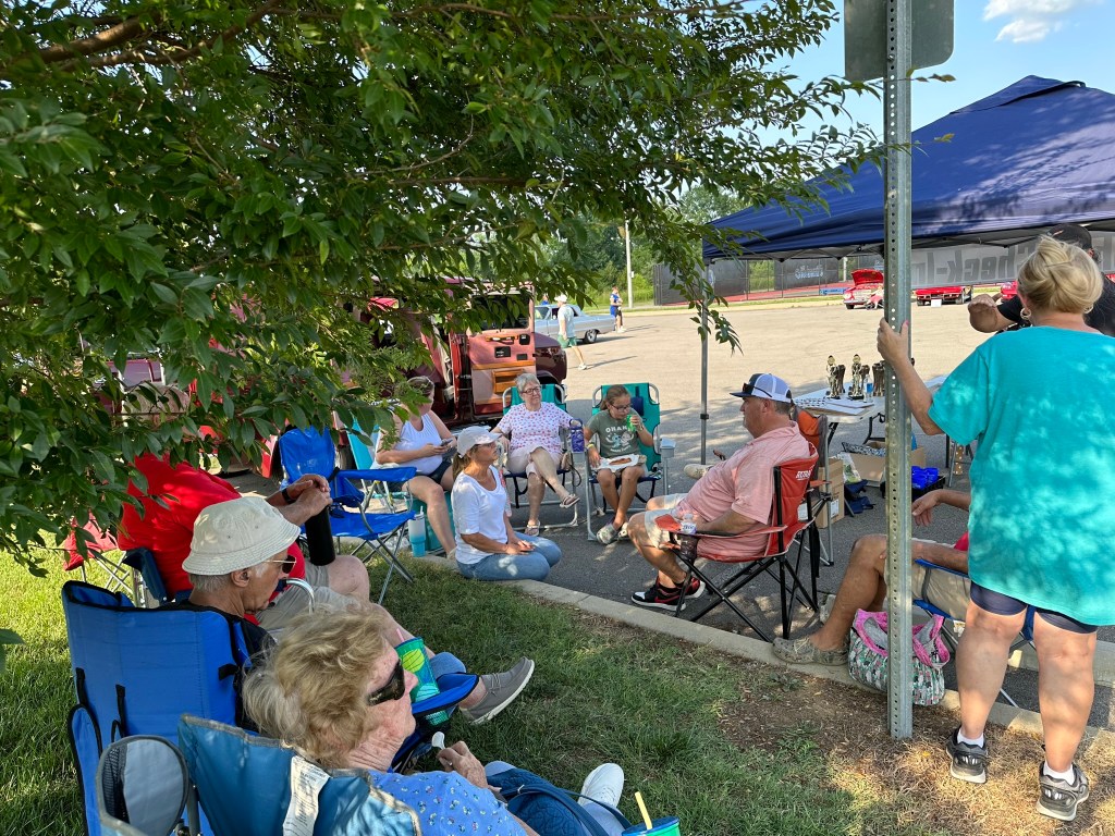 Upon arrival, we were directed to the parking area and met up with Mike & Connie and Callie, (their granddaughter) who were already there. We lined up our cars and then grabbed our chairs and went off across the parking lot in search of a nice shady spot where we could watch the cars and sit and talk while we enjoyed the light breeze while waiting for the judges to “do their thing”.