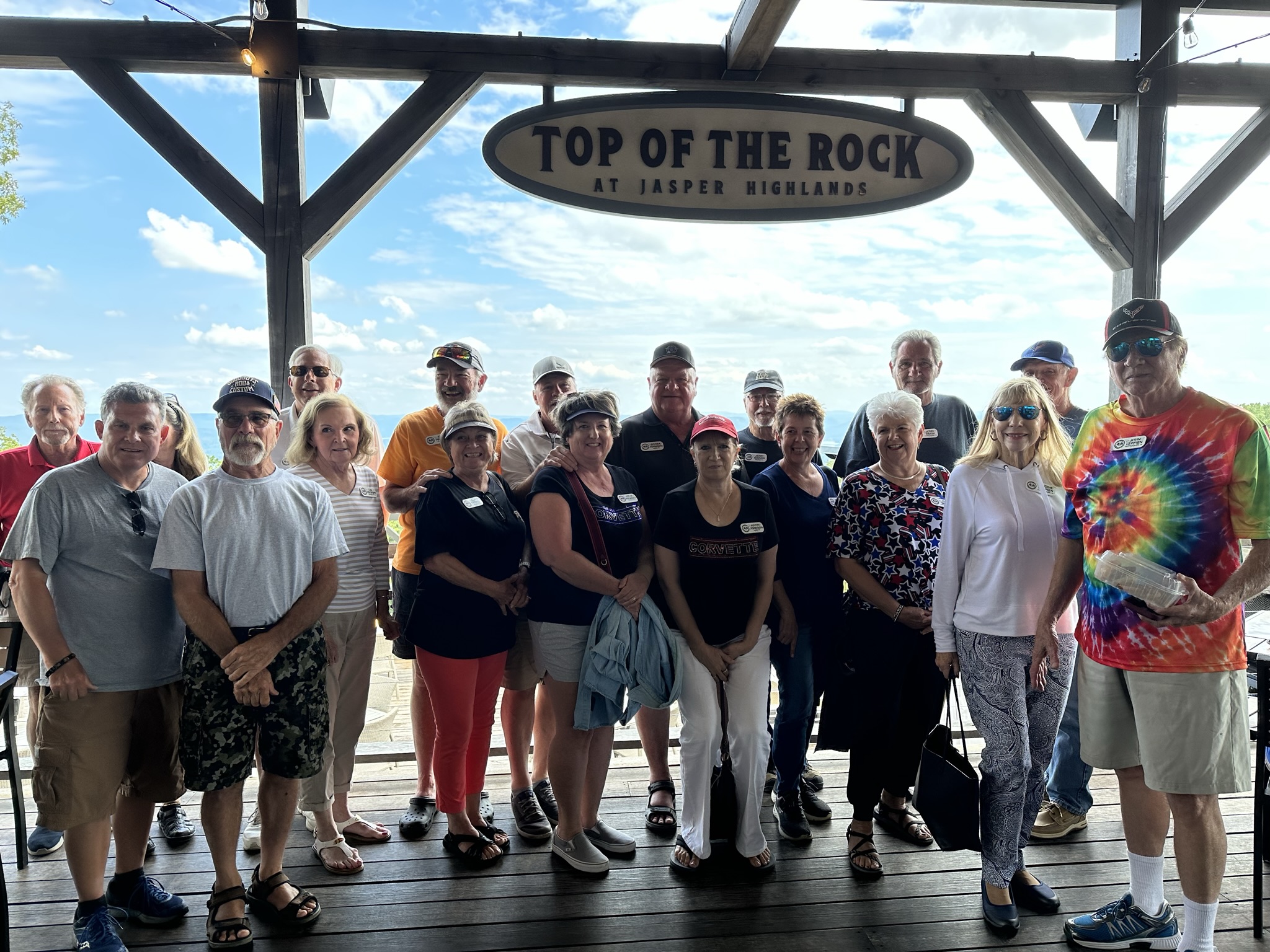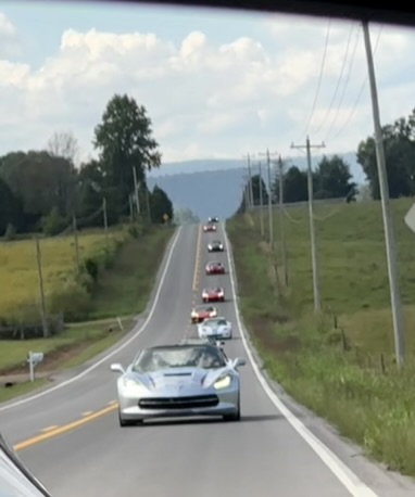 On September 13th 18 Club Members plus one guest (for a total of 19) traveling in 11 Corvettes, headed out together along Tennessee’s beautiful two-lane backroads for a day filled with fun and adventure to the Top of the Rock Restaurant in Jasper, TN. If you’ve never been to the “Top of the Rock” you really should try it! From their deck, you look out over the valley at the Tennessee River and the Nickajack Dam. Across the river to the east, you are looking at Georgia and to the south, Alabama. After lunch, we took a short drive over to the Lodge Factory Store. Although many of us enjoyed the shopping, we didn’t get to see the “World’s Largest Cast Iron Skillet” We ended the day, with ice cream of course – at Ember’s Ice Cream in Pikeville, Tennessee.