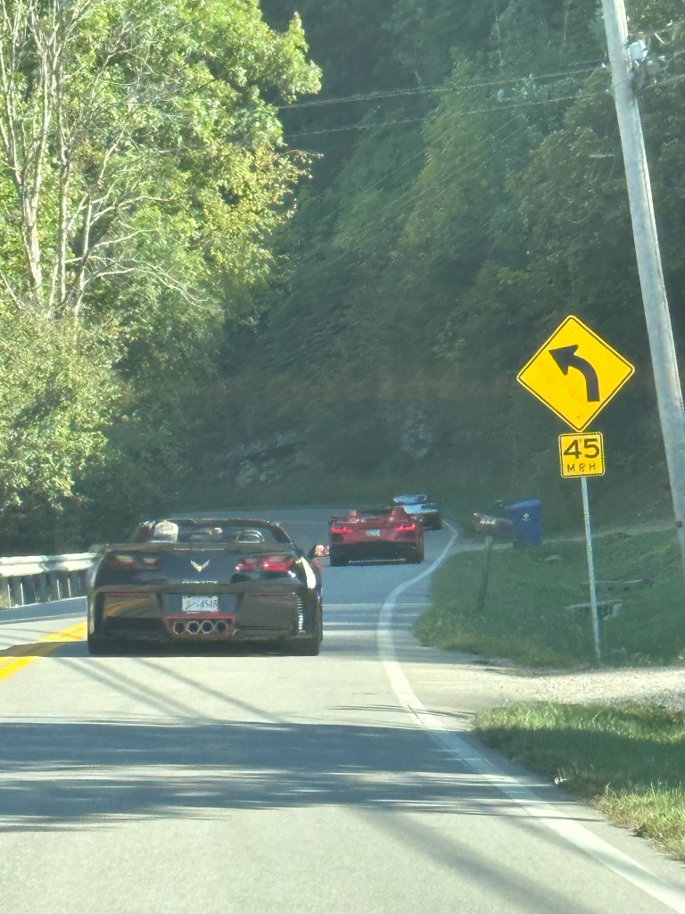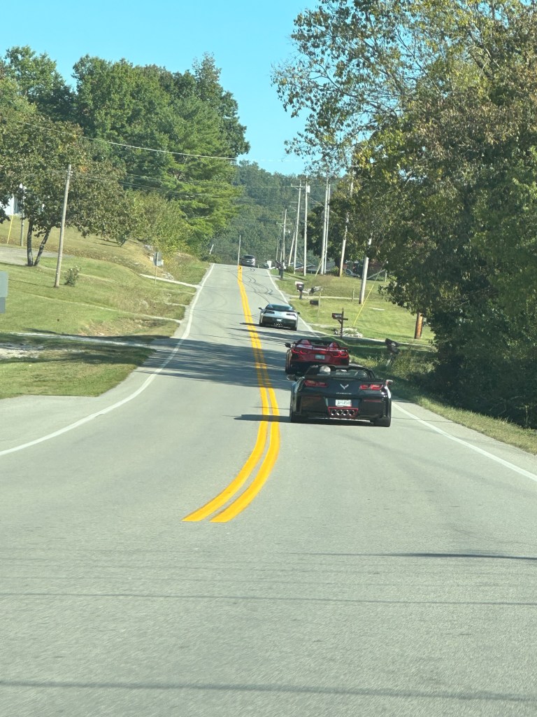 Friday September 22nd 12 members in 6 Corvettes hit the curves headed to Somerset, Kentucky for the Somernights all Corvette Only Showcase. After a beautiful scenic drive, they stopped in Burnside, Kentucky for the “meet n greet”. They joined in the “Rattlesnake Run”, 326 curves in 74 miles through the Daniel Boone National Forest (really nice curvy road route with a stop off at Cumberland Falls State Park).