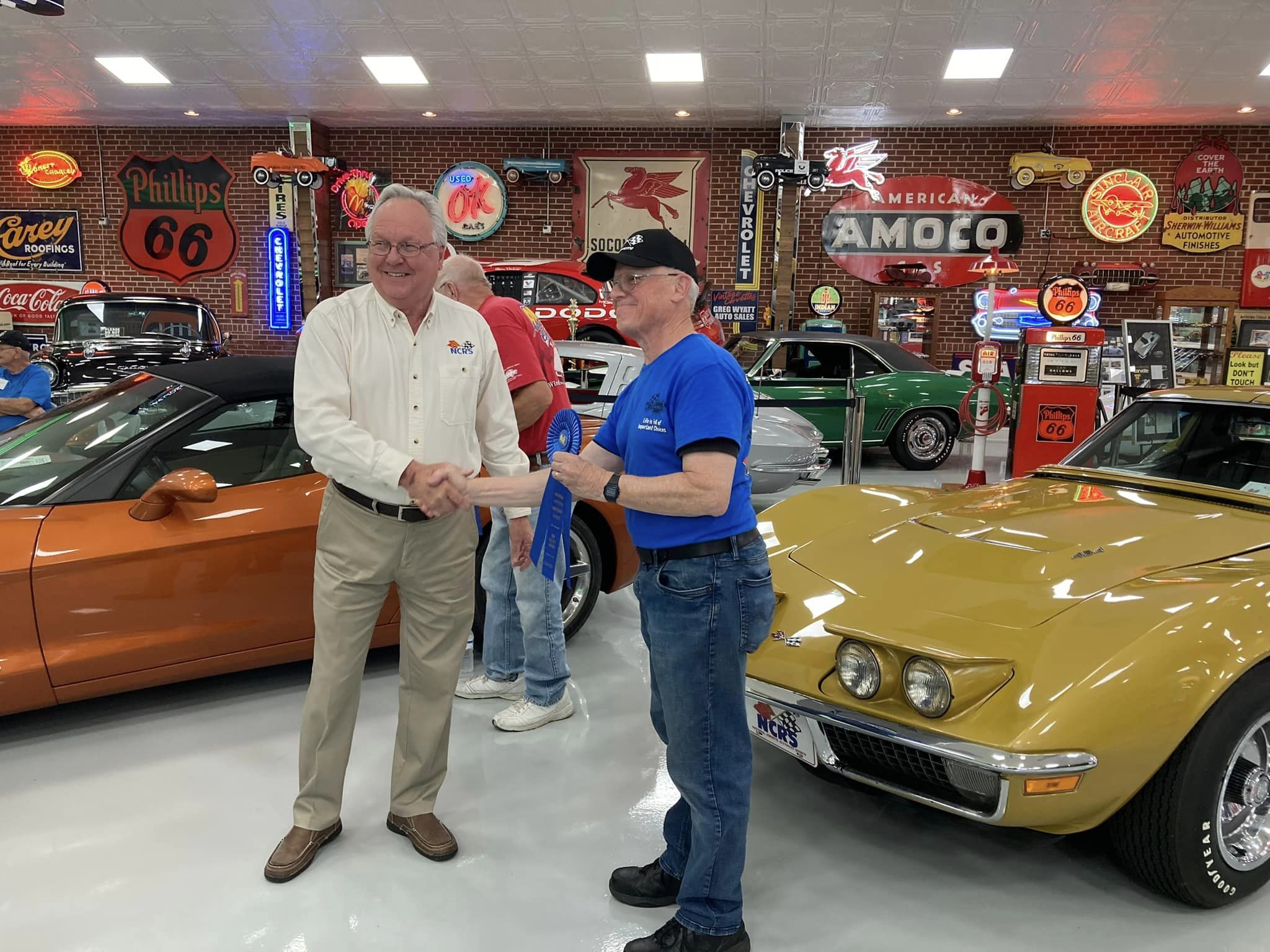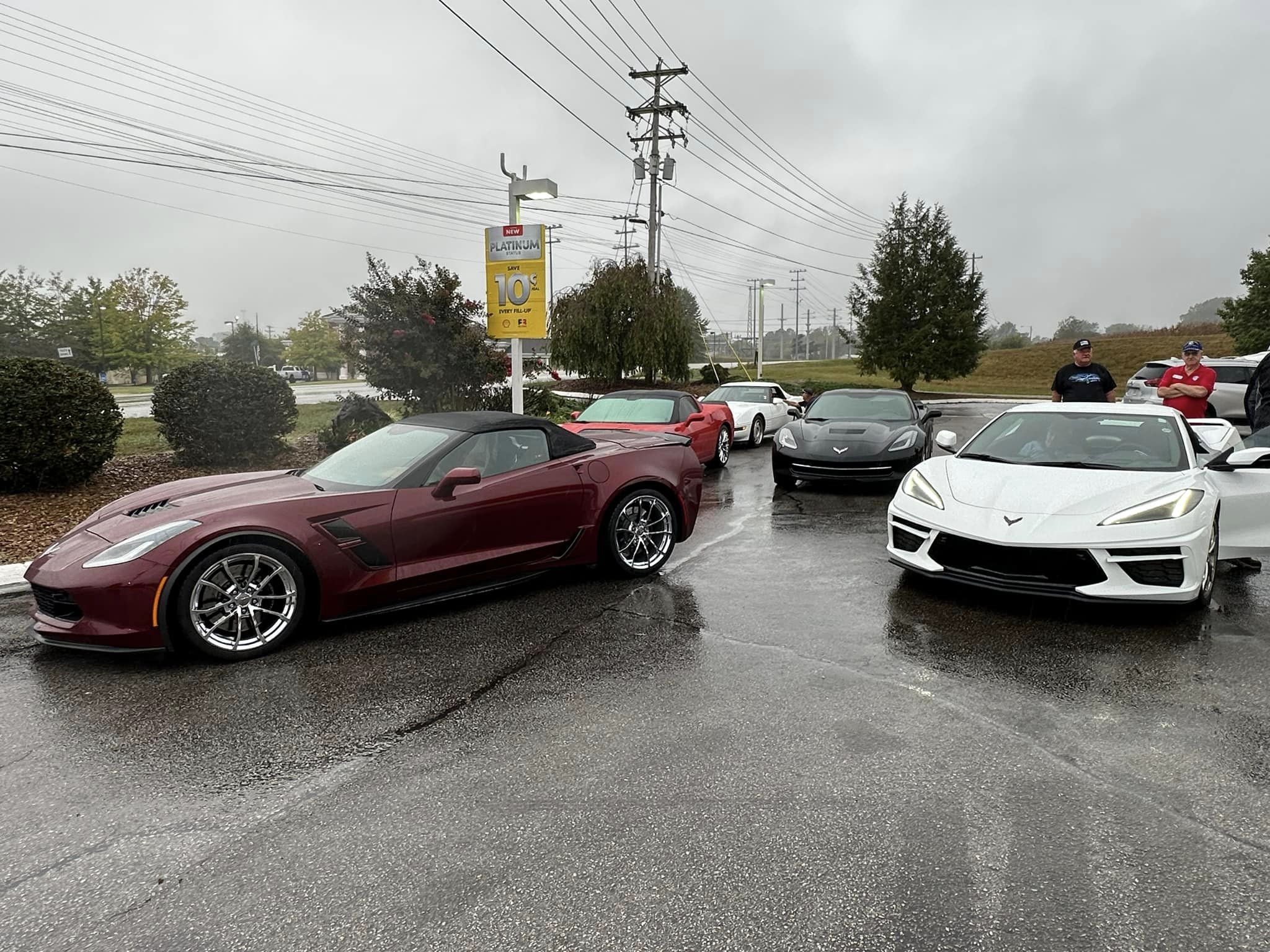On October 6 several Plateau Corvette Club members drove to Summerville Ga to attend the NCRS Judging being held at Greg Wyatts Vintage Corvettes in Summerville Ga. They were not going to let a little liquid sunshine dampen their fun!! Club members Mike (1966) and Ed (1971) had their Corvettes there for NCRS Judging.