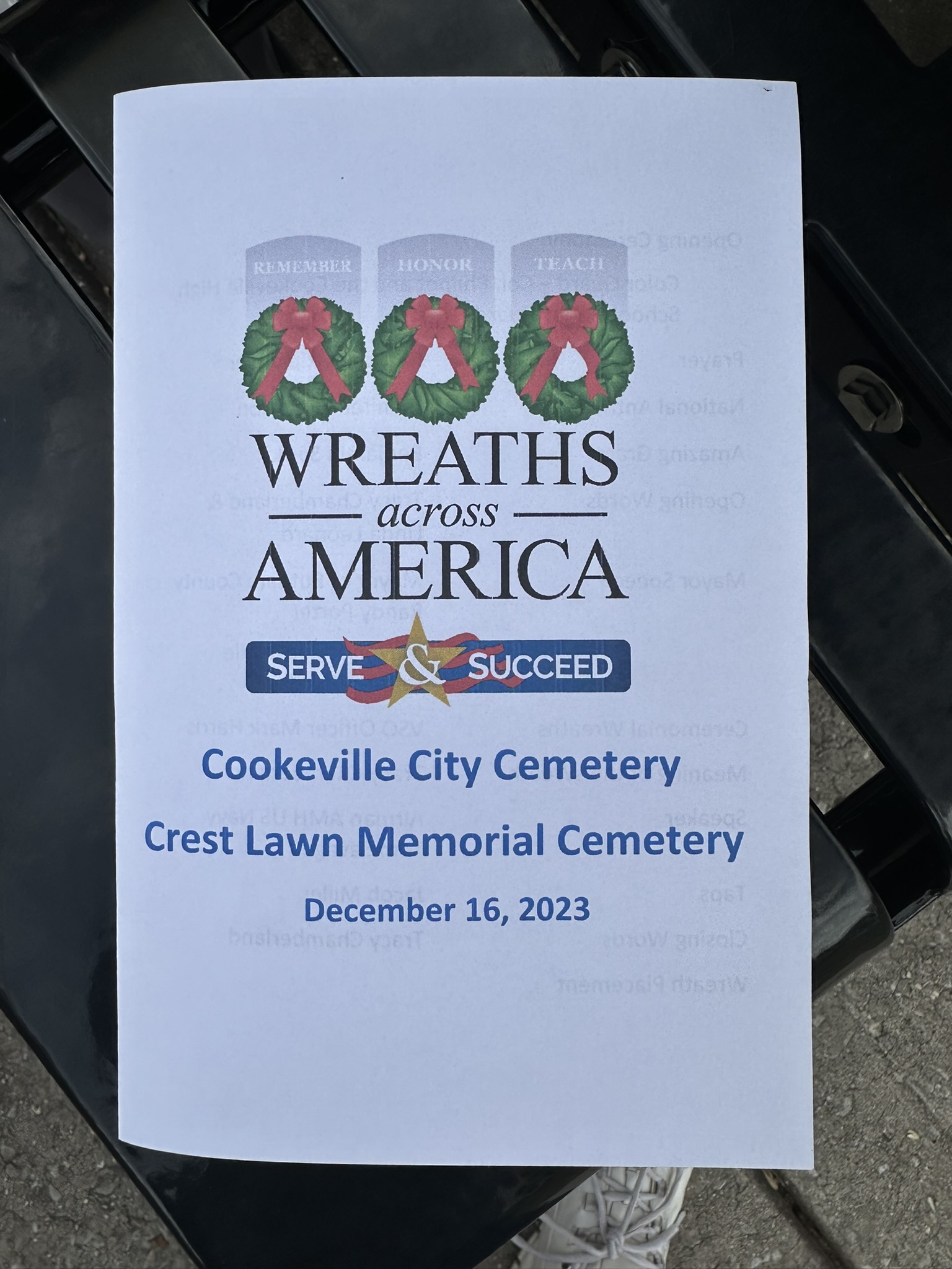 December 16th Plateau Corvette Club members participated in the National Wreaths Across America Day by attending the ceremony at the Cookeville Courthouse and then traveling to Crestlawn Cemetery where they volunteered to lay wreaths on Veteran’s graves. During this process, they were asked and encouraged to say the name of the Veteran aloud as they placed the wreath on his or her grave, thank them for their service and sacrifice, and lastly, to reflect on that person and their life. It was truly an emotional experience.