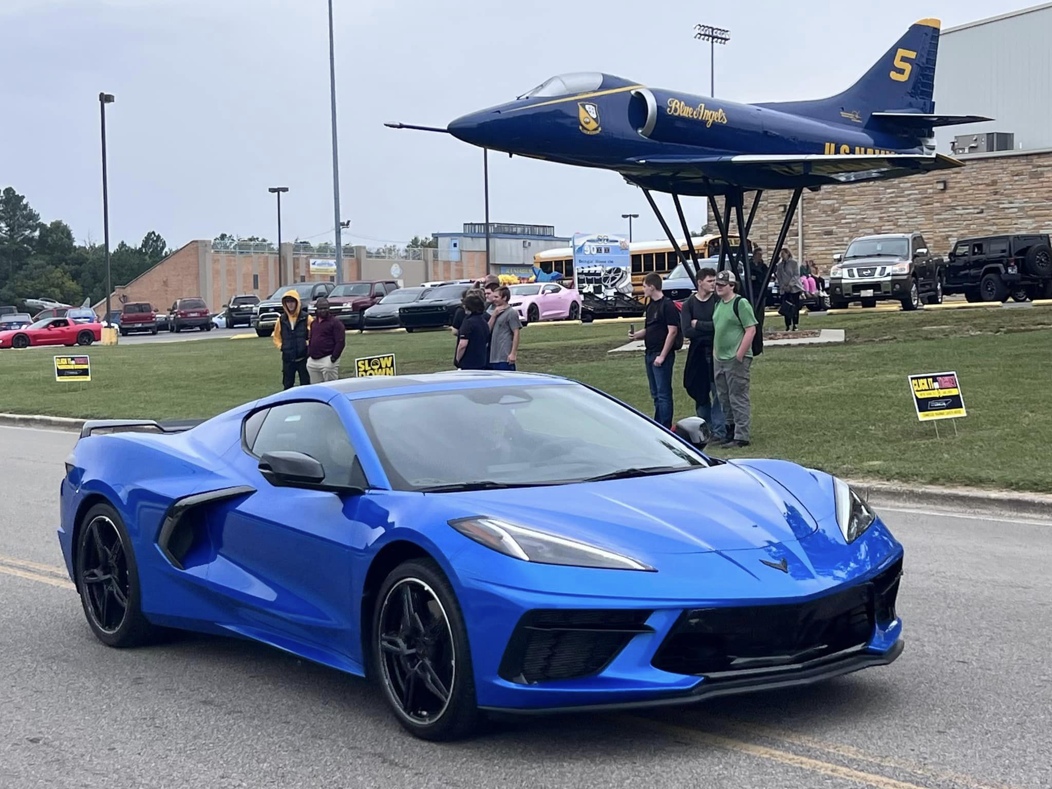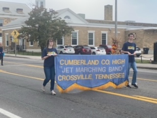The school is known as “The JETS”. A Beautiful “Blue Angel Jet” is on display at the school. Mr. Watson (a former student & lifelong resident of Crossville) was a Blue Angels Jet pilot. Look closely his name is under the window. It was being “Rededicated” Thursday at 4:30. A fresh paint restoration has recently been done on the plane There is also another Jet by the football field, also flown by a female former student of the high school, the 7th ever female jet pilot! Crossville is a great small town!