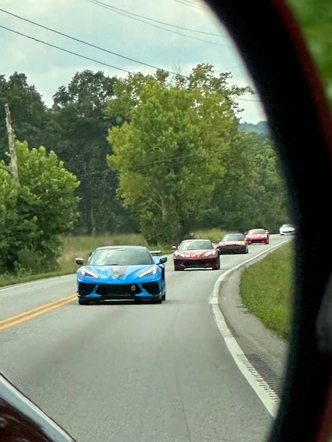 Saturday, July 26th: A Rain-or-Shine Rendezvous with the Road! After weeks of playing weather roulette, 12 Corvettes and 24 members of the Plateau Corvette Club decided enough was enough—it was time to hit the road, forecast be darned! With windshield wipers at the ready and hearts set on adventure, we gathered under a brilliant Tennessee sun for our driver’s meeting, buzzing with anticipation for some much-needed curve therapy and camaraderie. Our route through Hickory Valley was nothing short of a scenic symphony. The winding roads rolled out like a welcome mat, inviting us to cruise through nature’s finest gallery. We crossed four breathtaking bodies of water—Calf Killer River, Caney Fork River, Stones River, and the shimmering Center Hill Lake—each one adding its own splash of magic to the journey. Tennessee was showing off in full summer bloom: wildflowers swayed like dancers in the breeze, rustic barns and proud silos stood as timeless sentinels, and the mountains painted the horizon with hues that felt almost divine. It was a feast for the senses, a soul-refreshing escape wrapped in horsepower and laughter.