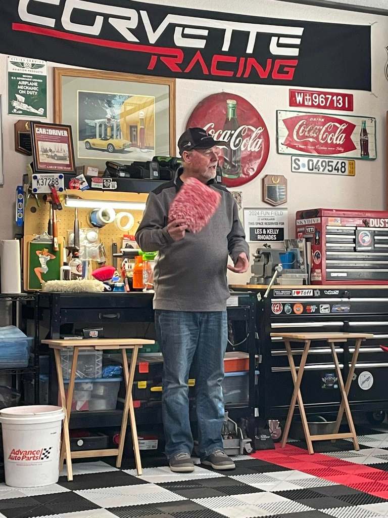 Feb 18th Les Rhoads hosted the February Tech Talk. Everyone met at The Long Road Cafe for lunch and then on to his house for a Tech Talk. Thanks to everyone who attended. Les spoke about his car washing techniques; tire care, car soaps, foam canon, and air dryer.