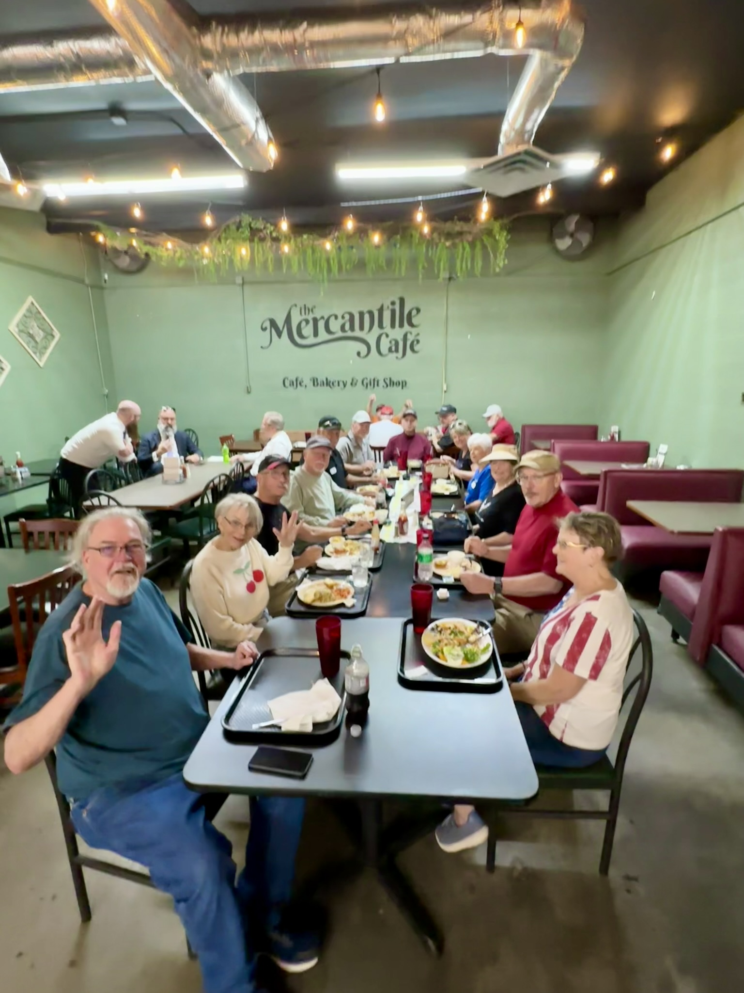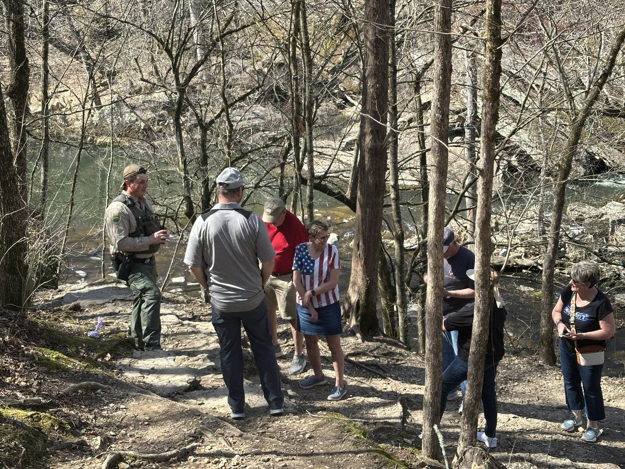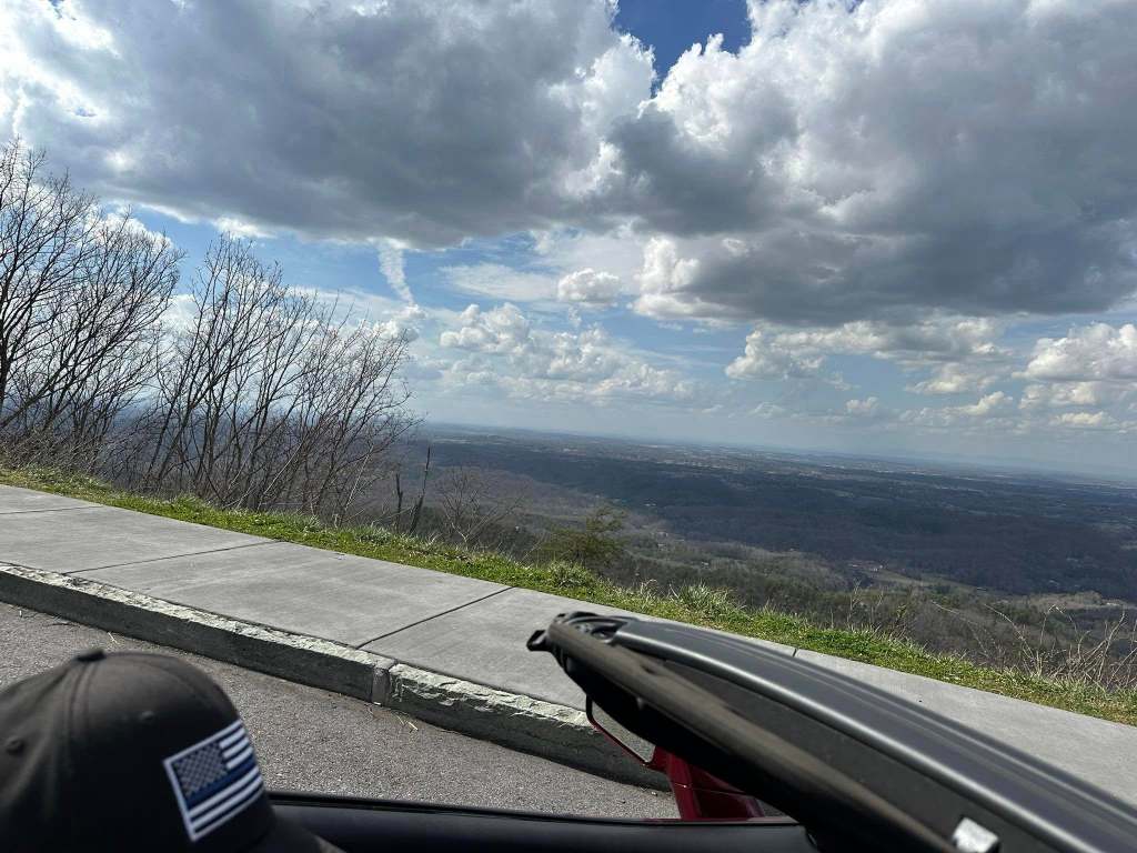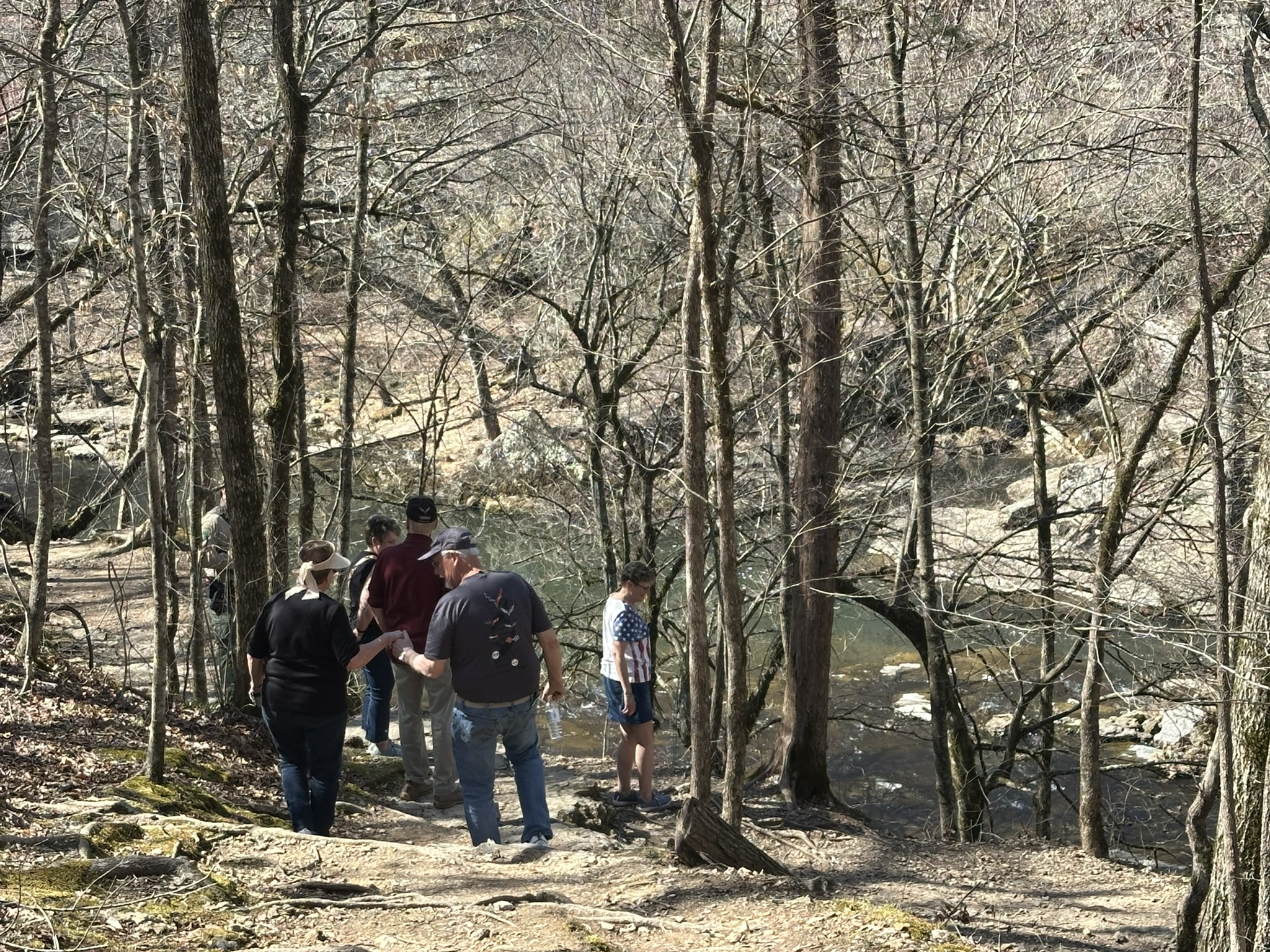 If you weren’t able to come along yesterday, you missed out all around – sunny skies, beautiful weather, great roads, great friends, good times and good food! It was a perfect day that left everyone smiling! There was something for everyone – straight roads, crooked roads, sightseeing opportunities, hills, valleys, prisons (we drove by one….), some of us ate meat and 3, some ate meat and 2, some ate salads, and others ate burgers and fries, (can’t forget your fried pie Ron), we laughed, we talked – we enjoyed the day. After lunch, we drove to the Old Stone Fort State Archaeological Park where some of us watched a brief film about the park while others explored the view of the falls off the roof of the Visitor’s Center. Once the film was over, some of us headed for home; some of us took a short hike/walk to view the Blue Hole Falls (one of the three falls in the park – the other two were a little further and more treacherous to get to).