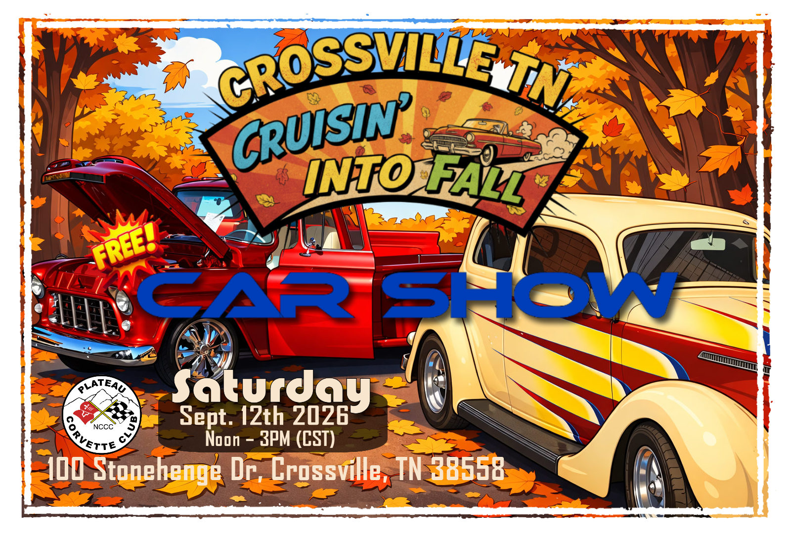 Come to our next monthly meeting in Crossville Tennessee to meet local Corvette owners in your community. Join us as we plan events and drives, so we can fully enjoy our Corvettes.